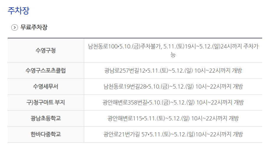 - 장소 : 구청광장 ~ 세븐일레븐(수영구청점) 광안리 해수욕장해안도로