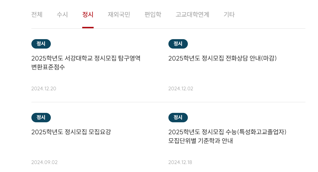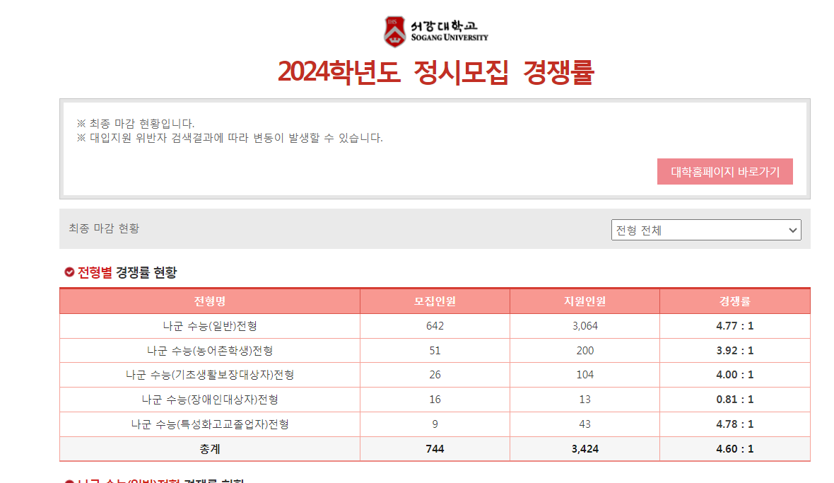 서강대 정시합격자 조회 및 전형결과 원서접수 경쟁률