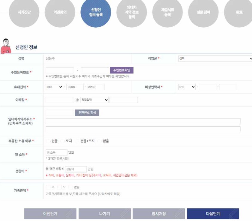 - 서울시 청년월세지원 본인 약관동의 클릭 후 신청작성하시면 됩니다.