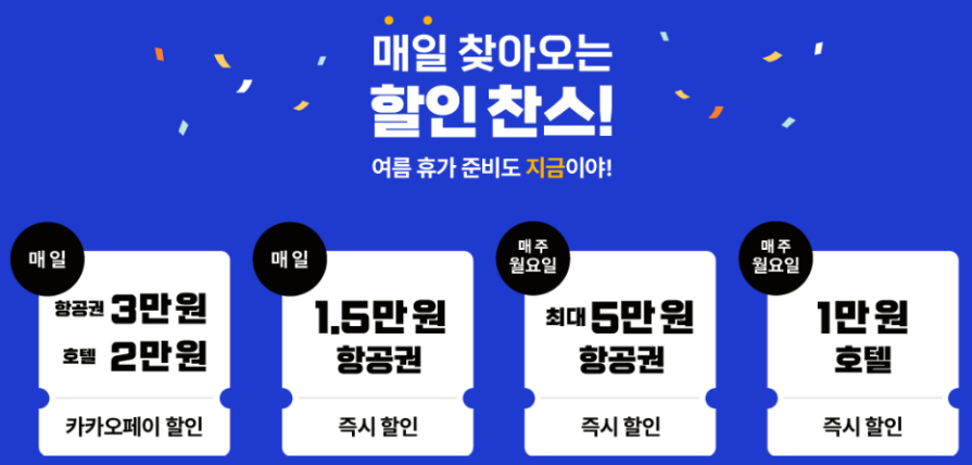 카카오페이 결제시 항공권 3만원, 호텔 2만원 적용됩니다.