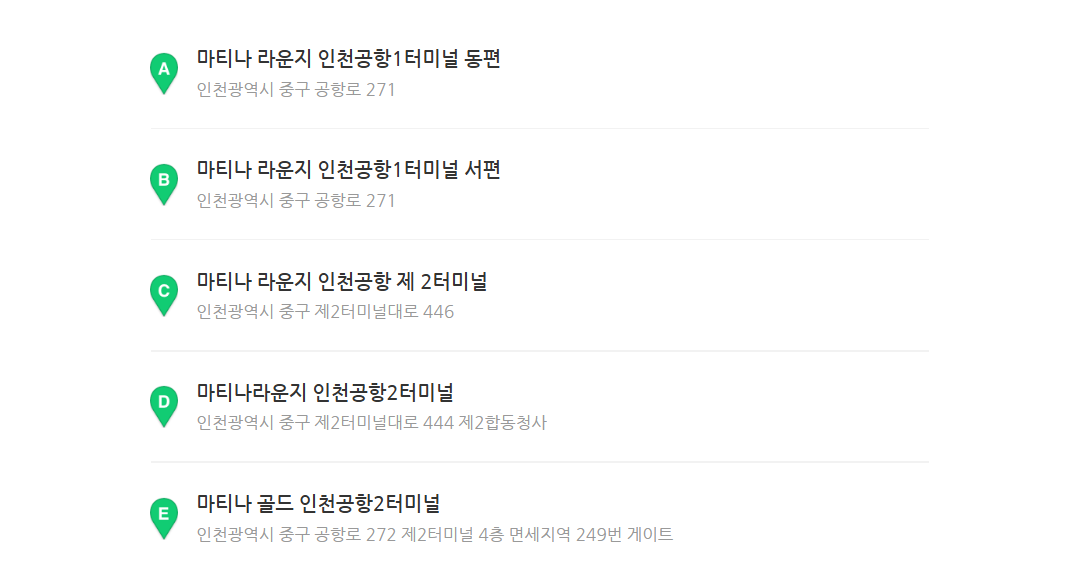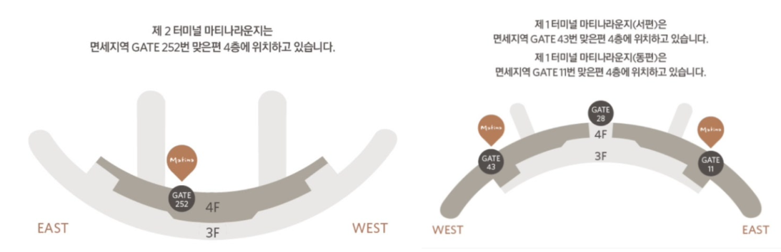 - 인천공항 1터미널 동편 : 4층 11게이트 맞은편 4층